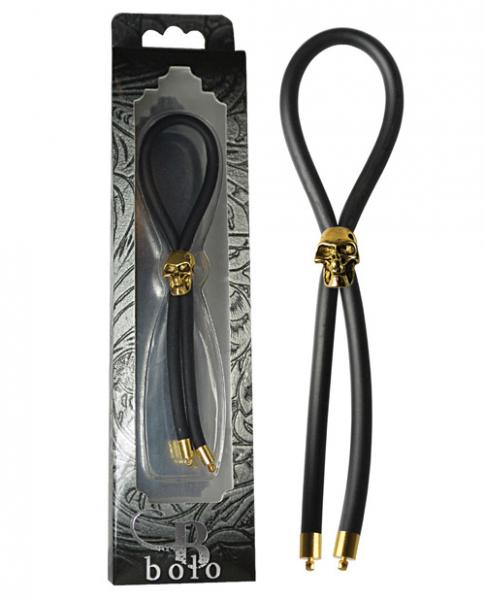 Bolo Lasso & Gold Skull Slider with Gold Tips Black