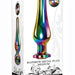 - Mid-sized rainbow aluminum anal plug with dazzling gem for enhanced sensual pleasure.