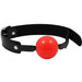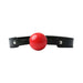 - Solid red plastic ball gag designed for comfortable BDSM play and restraint.