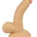 - Beige realistic dildo with textured balls for added stimulation and pleasure.