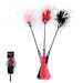 • Dual-ended sensory whip with rubber tickler and soft marabou feather tip for varied sensations.