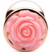 - Premium rose gold anal plug with delicate pink flower design for elegant aesthetic.