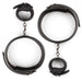 The handcuffs are attached to the thigh cuffs with clip fasteners.