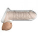 Soft and stretchy to perfectly hug your shaft, this majorly size boosting sleeve stretches six inches from its ball teasing base to a firm head in a sheer, frosted material that looks and feels incredible.