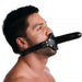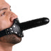 This double dose of dick is supported by a heavy-duty adjustable leather strap that buckles behind the head, and a studded mouth-guard.